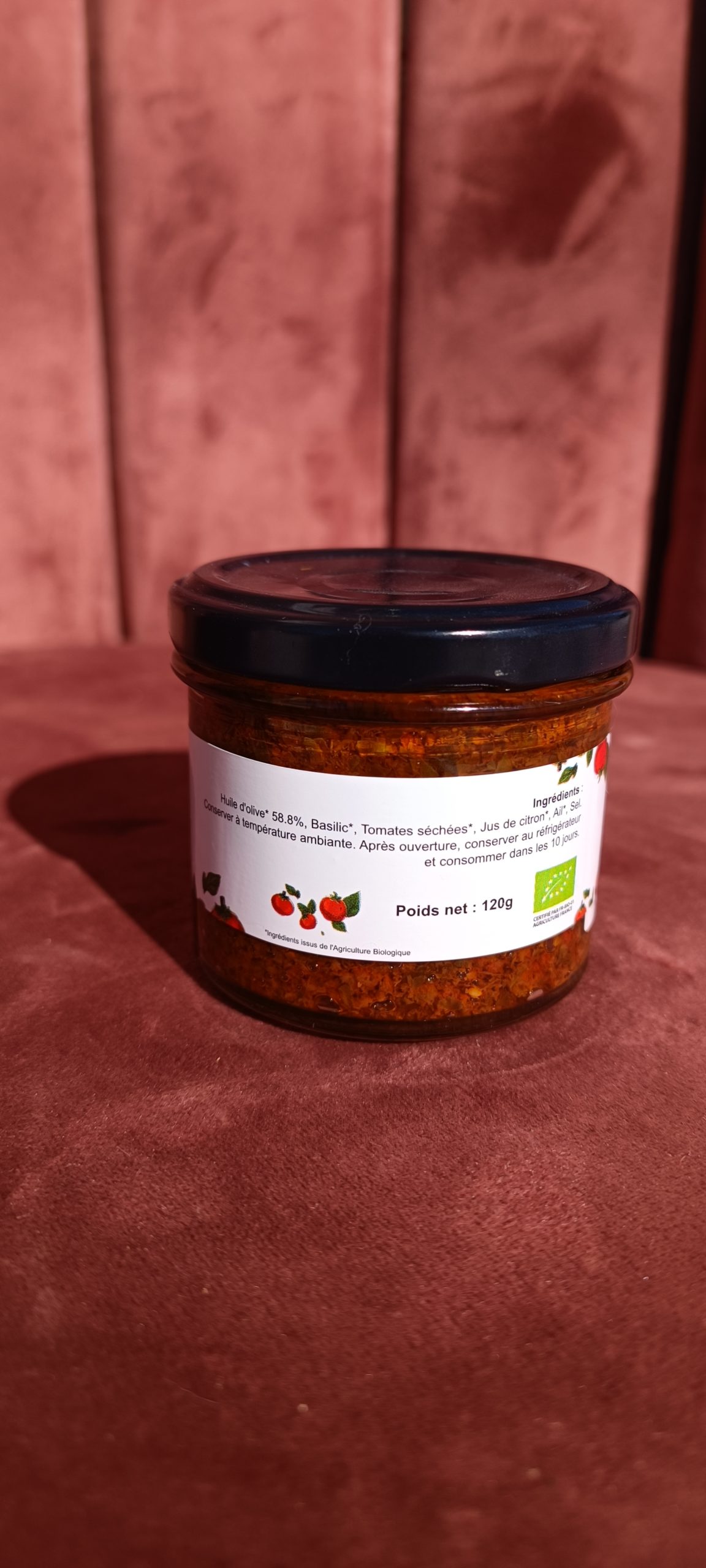 Issu de l’association 100% Fontvieilloise avec une maraichère, notre pistou rouge est composé d’ingrédients 100% bio et sans additif.